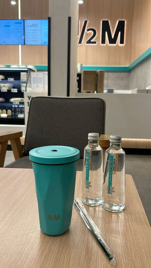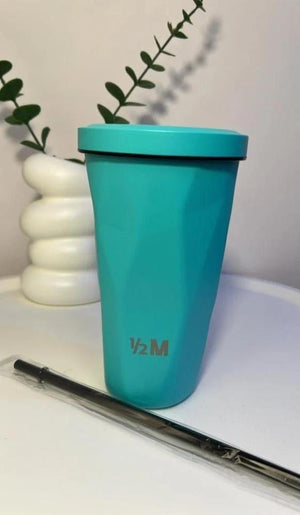 استمتعي بمشروباتك المفضلة بأسلوب أنيق مع كوب هاف مليون القابل لإعادة الاستخدام، بلونه الأخضر الفيروزي الجذاب وتصميمه العصري. مناسب للقهوة الباردة، العصائر، والمشروبات اليومية سواء في البيت أو أثناء الخروج